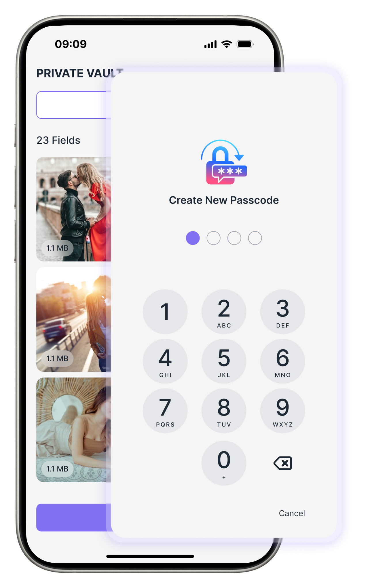 Secure your personal photos in a locked space using Face ID or a PIN. Hidden from your system gallery — only you can access them.